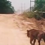 Harimau Besar Muncul di Ruas Jalan Zamrud Siak, Tim BBKSDA Diterjunkan