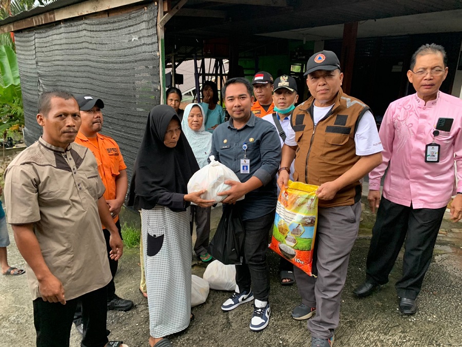 BPBD Kota Pekanbaru bersama pihak camat dan lurah setempat menyalurkan turut serta menyalurkan bantuan sembako berupa beras dan kebutuhan pangan lainnya, kepada korban banjir, Jumat (23/12/2022).
