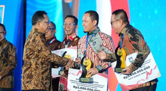 Walikota Pekanbaru Agung Nugroho, menerima penghargaan dari Pemerintah Pusat atas keberhasilannya dalam menekan angka kemiskinan