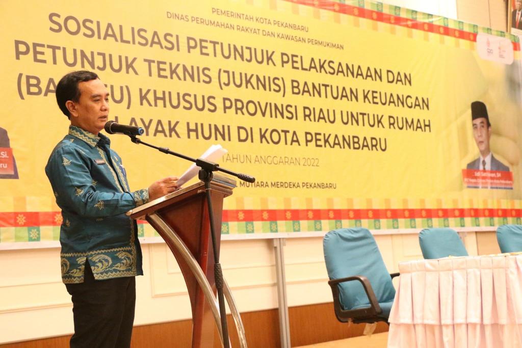 Mahyuddin dalam sambutannya saat membuka acara sosialisasi yang dihadiri Kepala PUPR Riau, Komisi IV DPRD Provinsi Riau, lurah dari 30 kelurahan, Ketua Kelompok Masyarakat (Pokmas) di 30 kelurahan, serta penerima manfaat bantuan RLH, menyampaikan, kegiatan ini merupakan sosialisasi petunjuk pelaksanaan dan petunjuk teknis (Juknis) rehabilitas rumah tidak layak huni (RTLH) menjadi rumah layak huni (RLH) yang tersebar di 30 kelurahan.