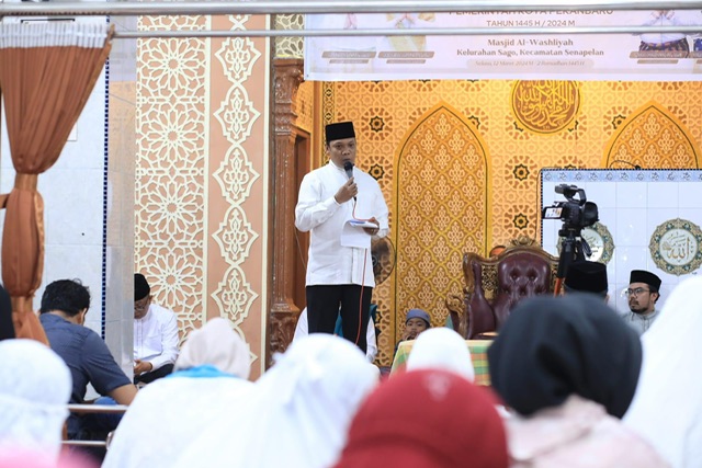 Penjabat (Pj) Wali Kota Pekanbaru Muflihun, S.STP, M.AP, mengawali safari Ramadhan 1445 H/ 2024 M di Masjid Al-Washliyah, Jalan Samratulangi, Kelurahan Sago, Kecamatan Senapelan, Selasa (12/3) malam.