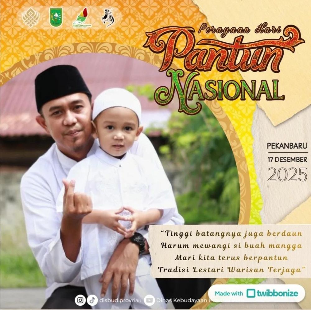 “Melalui twibbon, semangat Hari Pantun Nasional 2025 diharapkan tidak hanya terasa di ruang-ruang pertunjukan dan kegiatan budaya, tetapi juga menggema luas di jagat media sosial,” ujar Kadisbud Riau, Hariyadi, pada Senin (15/12/2025).