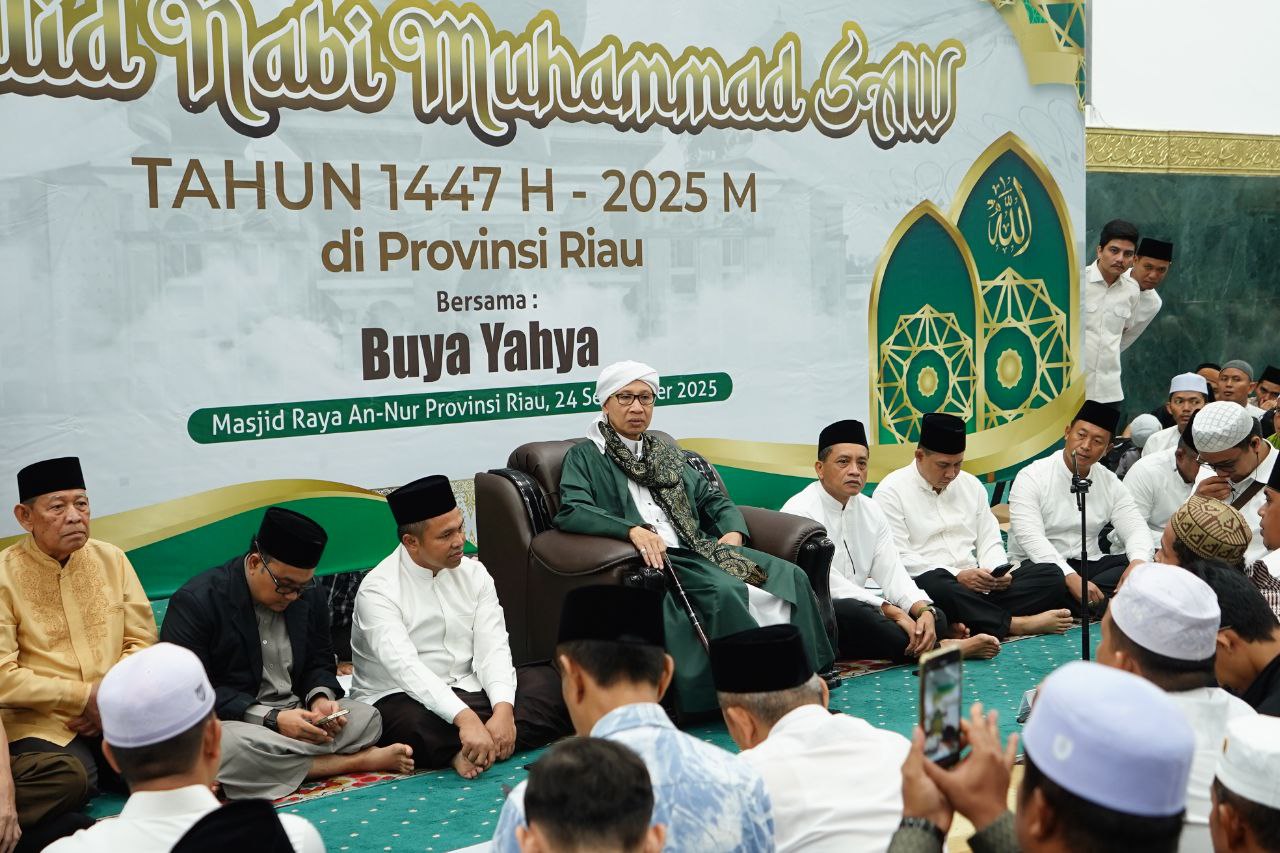 Gubernur Riau Abdul Wahid, kembali menegaskan komitmennya untuk menunaikan janji-janji kampanye yang telah ia sampaikan kepada masyarakat Riau terkhusus terkait keagamaan. Pada peringatan Maulid Nabi Muhammad SAW di Masjid Raya Annur, Rabu (24/9/2025) malam. Pemprov Riau menghadirkan Buya Yahya, seorang ulama terkenal dari luar Provinsi Riau, sebagai pengisi ceramah.