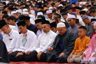 Gubernur Riau (Gubri), Abdul Wahid, melaksanakan Salat Iduladha 1446 Hijriah di Halaman Masjid Raya Annur Provinsi Riau, Jumat (6/6/2025). Kehadiran orang nomor satu di Riau ini disambut hangat oleh ratusan jemaah yang memadati kawasan masjid.