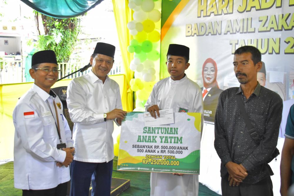 Dalam rangka peringatan Hari Jadi yang ke-24 Badan Amil Zakat Nasional tahun 2025, pemerintah Kabupaten Kampar menyalurkan santunan kepada 900 orang.