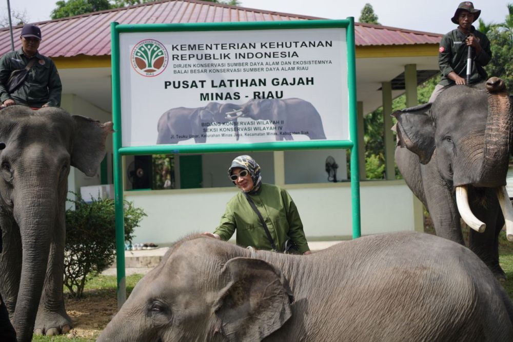 Ketua Umum TP PKK Pusat, Tri Tito Karnavian, bersama Ketua TP PKK Provinsi Riau, Henny Sasmita Wahid, ke Pusat Latihan Gajah (PLG) Minas, Kabupaten Siak, Kamis (17/7/2025). Kunjungan ini simbol nyata komitmen TP PKK dalam menjaga kelestarian gajah Sumatera sebagai satwa endemik yang terancam punah.