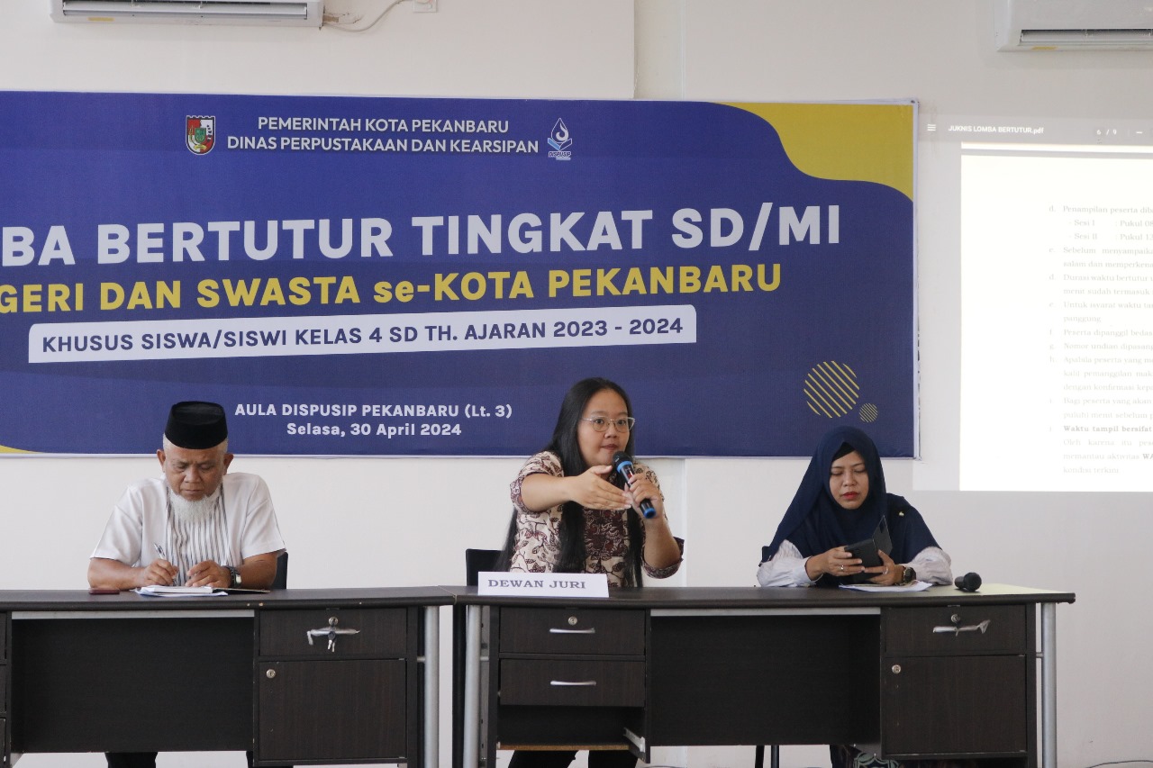 PEKANBARU – Dalam upaya meningkatkan minat baca pada anak-anak, Dinas Perpustakaan dan Kearsipan Kota Pekanbaru menggelar Lomba Bertutur tingkat SD/MI Negeri dan Swasta. Lomba ini memanfaatkan karya-karya yang tersedia dalam perpustakaan digital milik Kementerian Pendidikan, Kebudayaan, Riset, dan Teknologi Republik Indonesia (Kemendikbud RI).