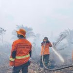 Tim dari Badan Penanggulangan Bencana Daerah dan Pemadam Kebakaran (BPBD Damkar) Riau, hingga saat ini