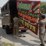 Tim Satpol PP Kota Pekanbaru Tertibkan Papan Bunga di Median Jalan
