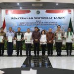 Penjabat (Pj) Wali Kota Pekanbaru Mulfihun, menerima langsung tiga sertifikat aset Pemerintah Kota (Pemko) Pekanbaru,