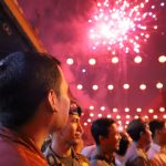 Penjabat (Pj) Wali Kota Pekanbaru Muflihun menyaksikan kembang api bersama warga saat malam perayaan Imlek