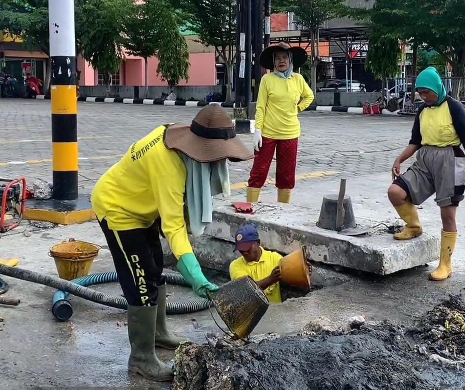 Pasukan Kuning Dinas PUPR Masih Bersihkan Drainase Tersumbat di Jalan Soebrantas