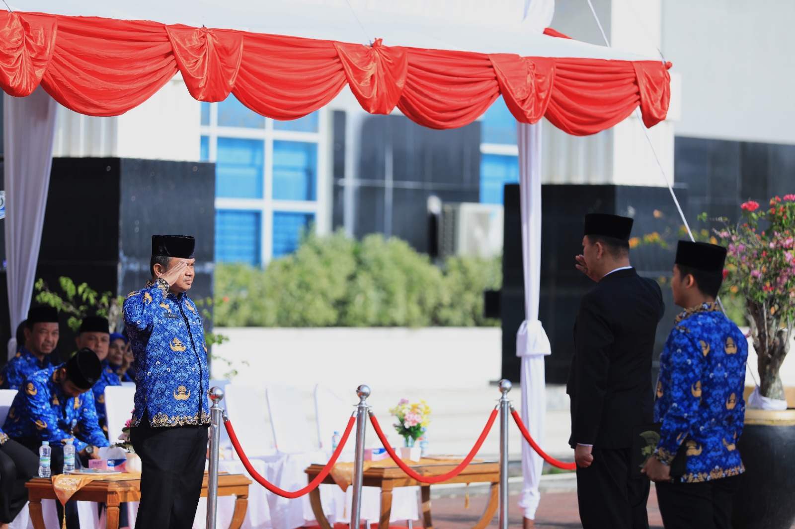 Sekretaris Daerah Kota (Sekdako) Pekanbaru Indra Pomi Nasution membacakan pidato Mendagri Tito Karnavian. Disampaikannya, perjalanan otonomi daerah lebih dari seperempat abad merupakan momentum untuk memaknai berbagai arti filosofi dan tujuan otonomi daerah.