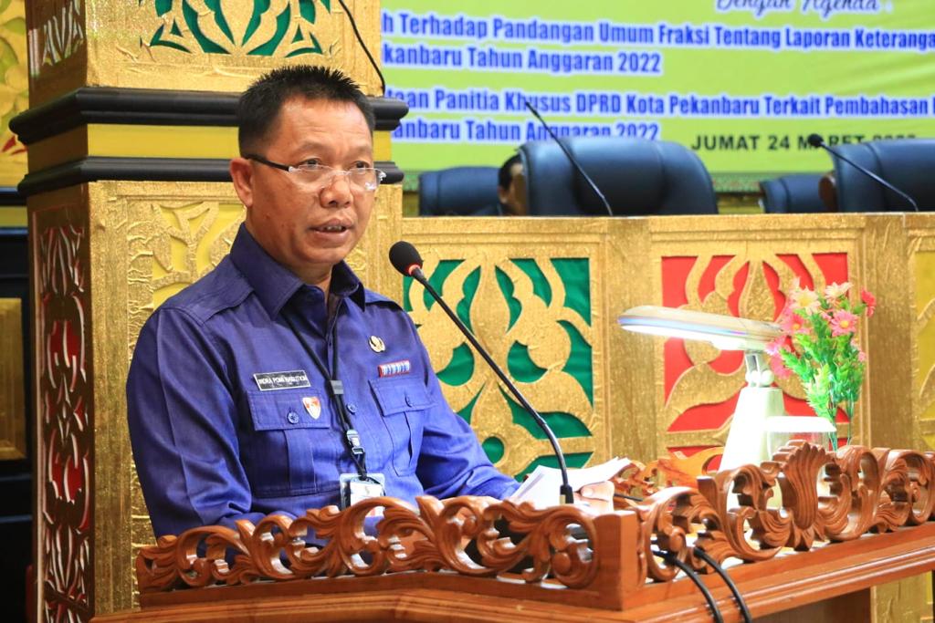 Paripurna ini dengan genda jawaban pemerintah terhadap pandangan umum fraksi tentang Laporan Keterangan Pertanggungjawaban (LKPJ) Pemerintah Kota Pekanbaru Tahun Anggaran 2022.