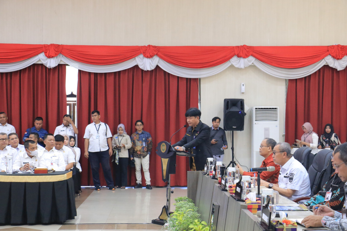 Penjabat (Pj) Wali Kota Pekanbaru Muflihun bersama Sekretaris Daerah (Sekda) Indra Pomi Nasution bersama kepala daerah lainnya mendapat arahan dari Wakil Keta Komisi Pemberantasan Korupsi (KPK) di Gedung Daerah Riau, Rabu (24/5). Arahan Wakil KPK Alexander Marwata terkait penataan aset dan Laporan Harta Kekayaan Penyelenggara Negara (LHKPN).