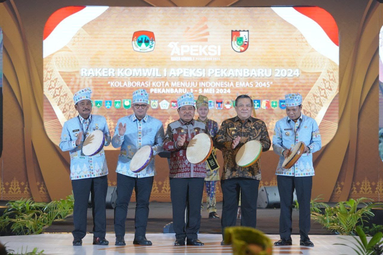 Pembukaan Raker Komwil I Apeksi ditandai dengan pemukulan kompang bersama Pj Gubernur Riau SF Hariyanto, Pj Walikota Pekanbaru Muflihun, Direktur Eksekutif Apeksi Alwis Rustam, dan Wakil Ketua III Komwil I Apeksi sekaligus Walikota Binjai Amir Hamzah.