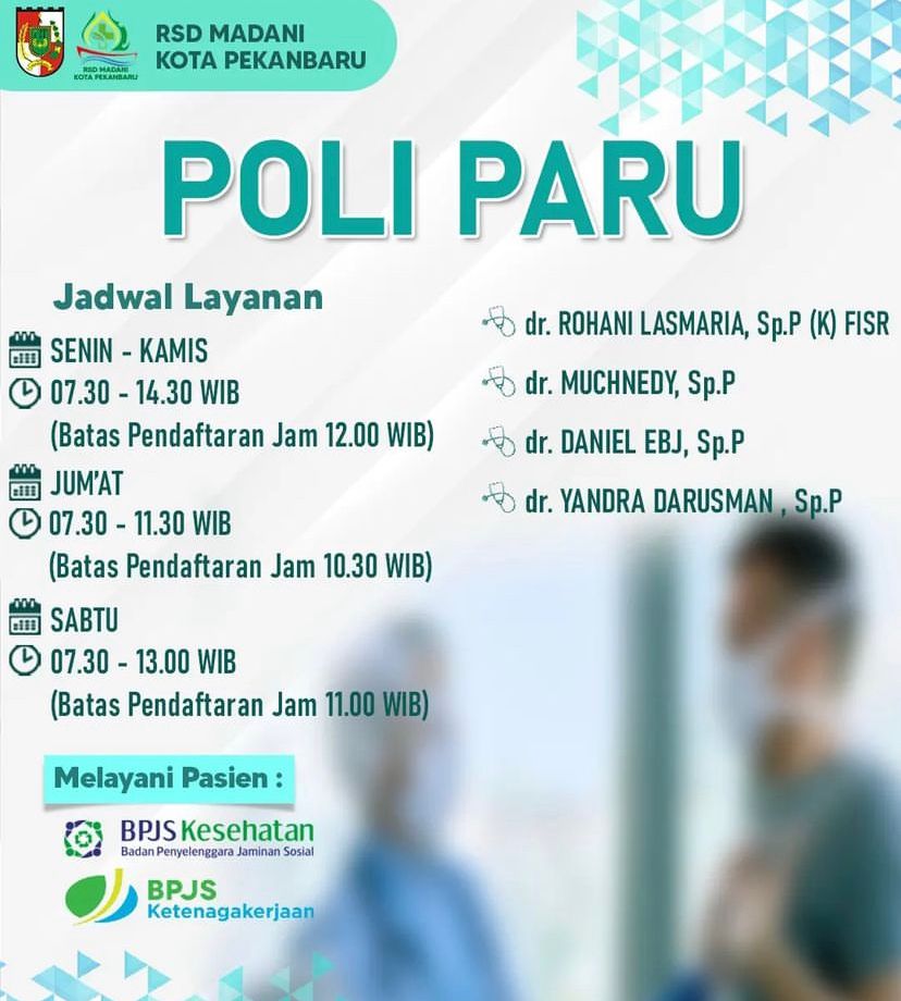 Direktur RSD Madani Pekanbaru dr. Arnaldo Eka Putra mengatakan, layanan Poli Paru tersebut dibuka dari Senin hingga Sabtu dengan jadwal yang telah ditetapkan.