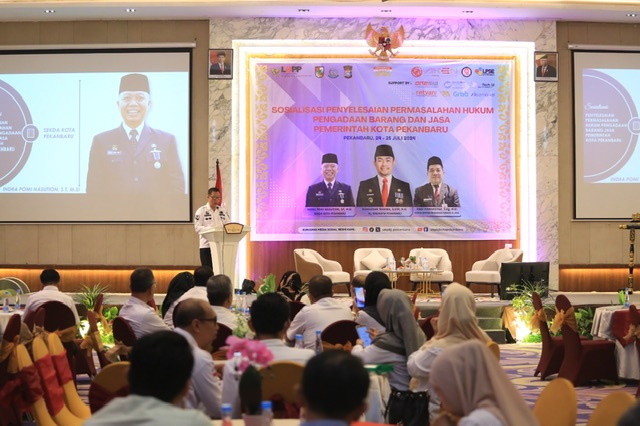 Sekretaris Daerah Kota (Sekdako) Pekanbaru membuka sosialisasi penyelesaian hukum pengadaan barang dan jasa di Hotel Royal Asnof, Rabu (24/7/2024). Sosialisasi ini penting agar para Pejabat Pembuat Komitmen (PPK) dan Pejabat Pengadaan (PP) bisa mengantisipasi persoalan yang muncul saat proses pengadaan barang dan jasa.