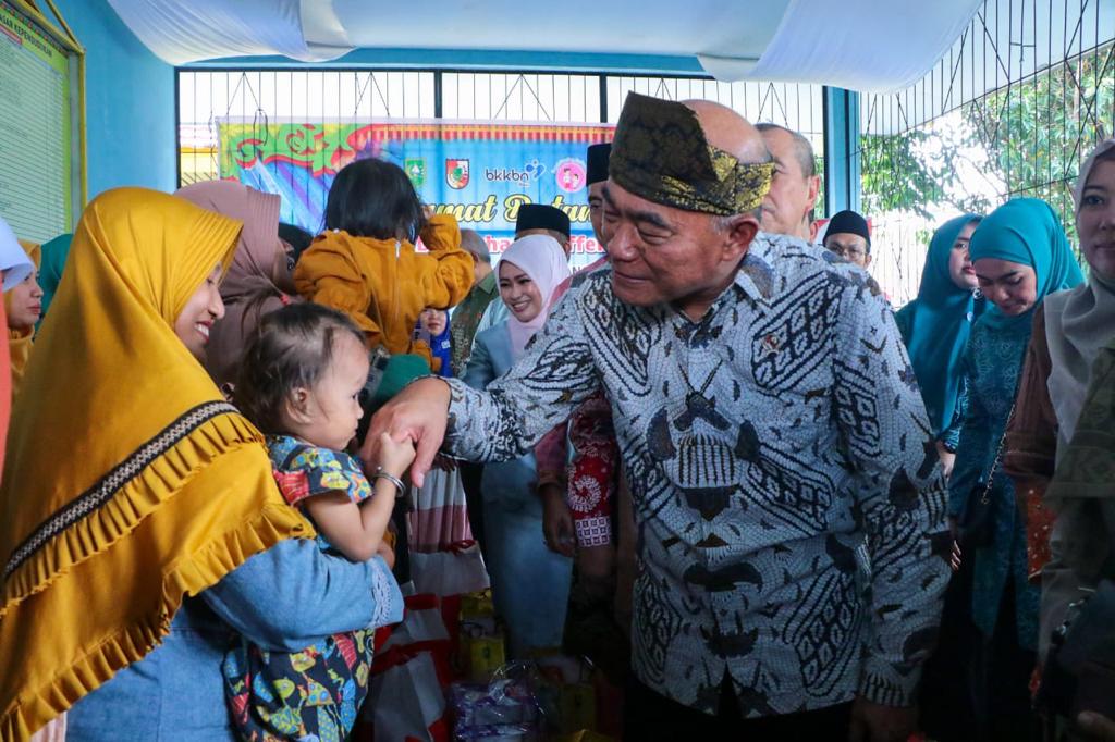 Dalam kesempatan ini, Menko PMK Muhadjir Effendi menyalurkan bantuan asupan gizi bagi anak-anak stunting di Kecamatan Marpoyan Damai. Bahkan, Profesor Muhadjir juga menghibur para balita ini dengan menggendong si anak di pangkuannya.