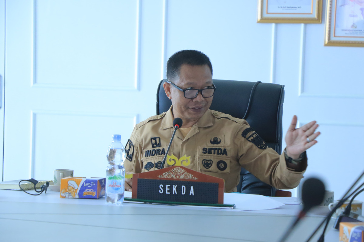 Indra Pomi memimpin rapat yang diikuti Kepala Dinas Pengendalian Penduduk dan Keluarga Berencana (Disdalduk KB) Muhammad Amin, serta beberapa pejabat lainnya.
