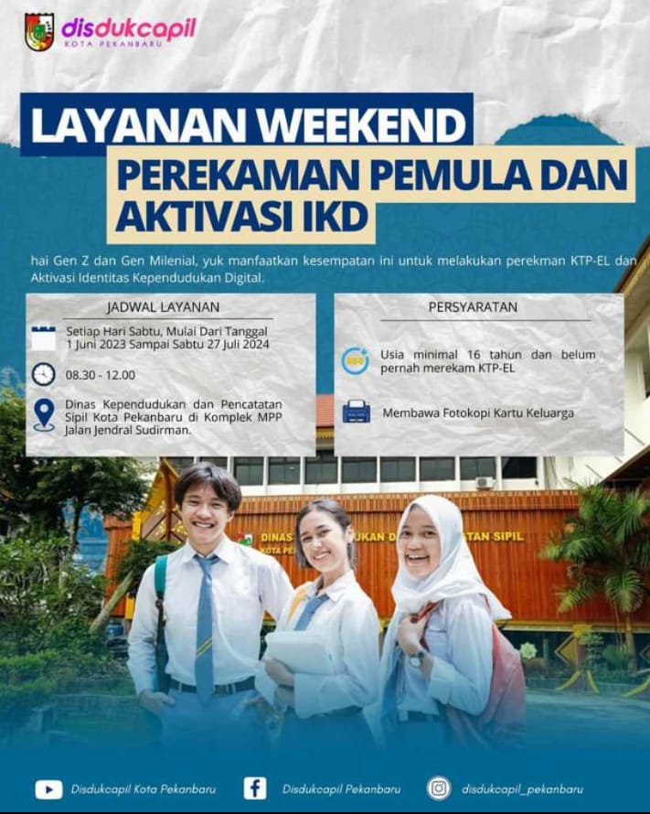 “Waktu pelayanan kita buka setengah hari dimulai pukul 08.30 sampai pukul 12.00 WIB. Tempatnya di kantor dinas,” kata Kepala Disdukcapil Kota Pekanbaru Irma Novrita, Kamis (30/5/2024).