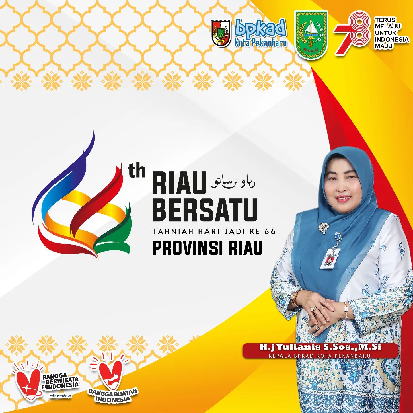 PEKANBARU – Tepat pada Rabu 9 Agustus 2023, Provinsi Riau resmi berumur 66 tahun. dengan memasuki 66 tahun Privinsi Riau merupakan sebuah rentang usia yang begitu matang. Untuk itu Kepala BPKAD Kota Pekanbaru Hj Yulianis S.Sos M.Si turut mengucapkan tahniah Hari Jadi Provinsi Riau ke-66.