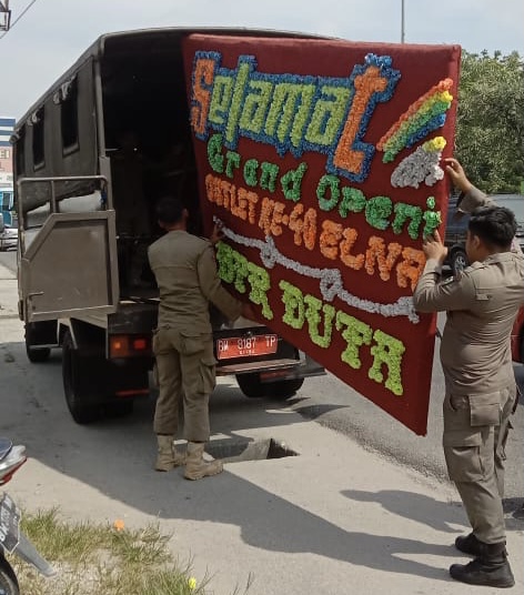 Petugas membawa seluruh papan bunga itu ke Kantor Satpol PP Kota Pekanbaru.