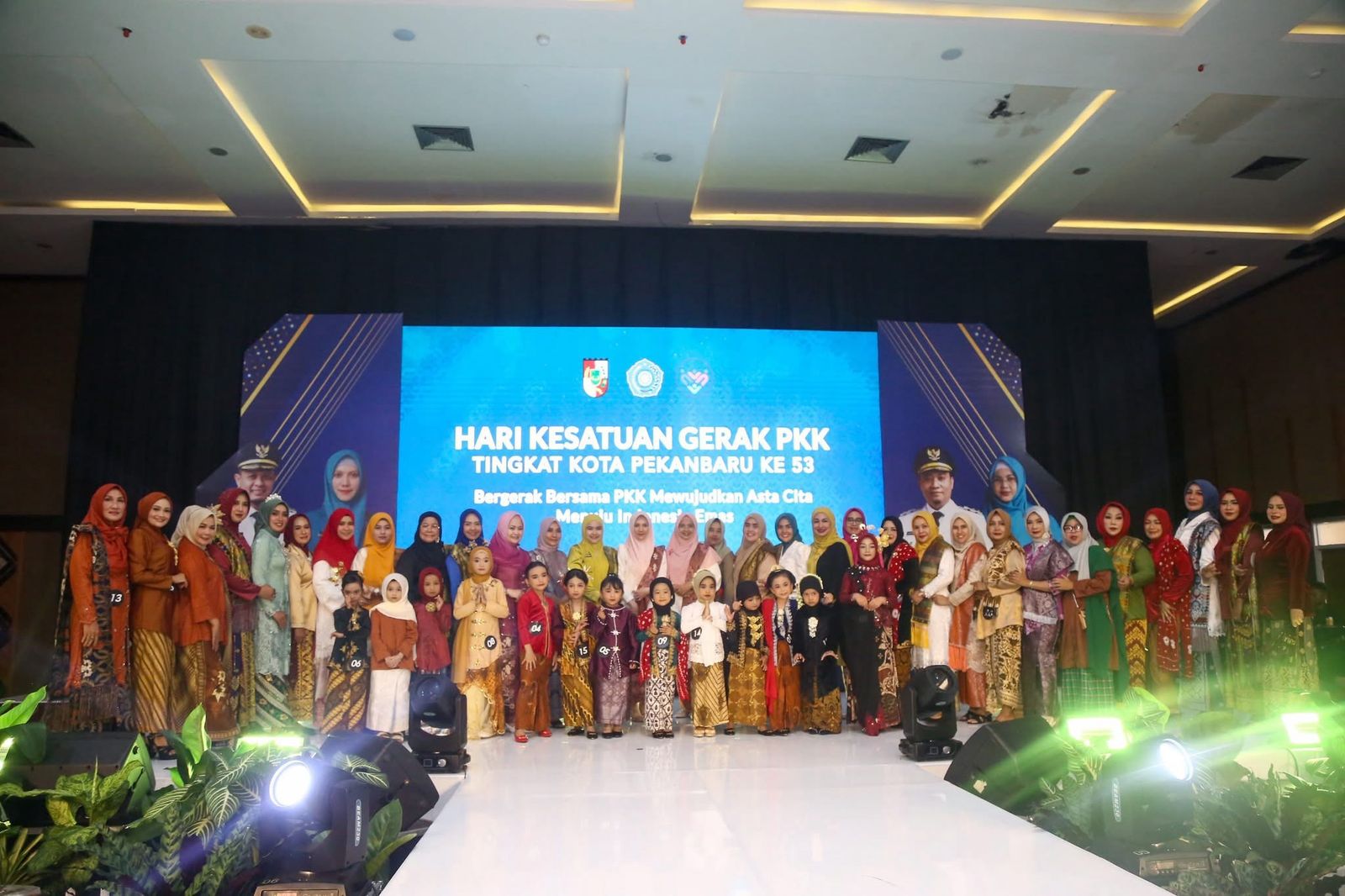 TP PKK Pekanbaru menggelar Peringatan Hari Kesatuan Gerak PKK Kota Pekanbaru yang ke-53 tahun di Lantai 6 Gedung Walikota Pekanbaru, Kecamatan Tenayan Raya, Senin (21/4/2025).