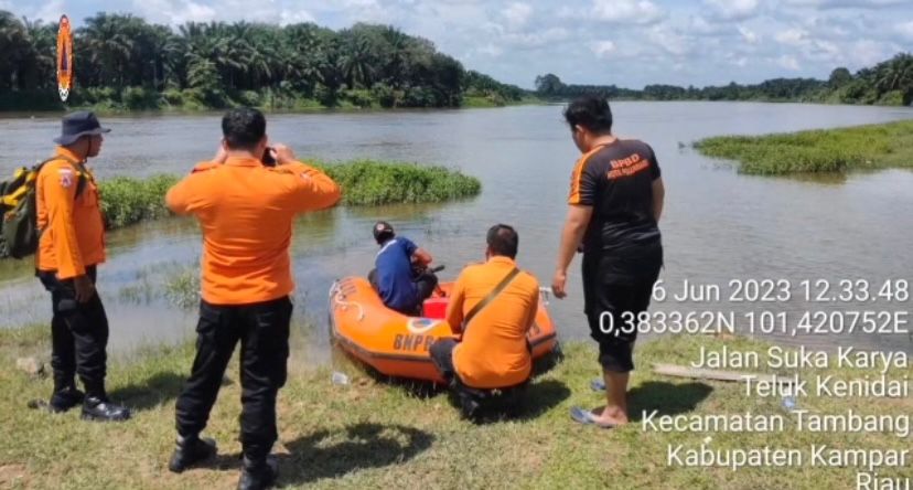 BPBD Pekanbaru ikut dalam pencarian Mahasiswa Politeknik Caltex Riau (PCR) CAK (19) dinyatakan hilang di Sungai Kampar, kawasan Pulau Cinta, Kabupaten Kampar pada 3 Juni 2023.