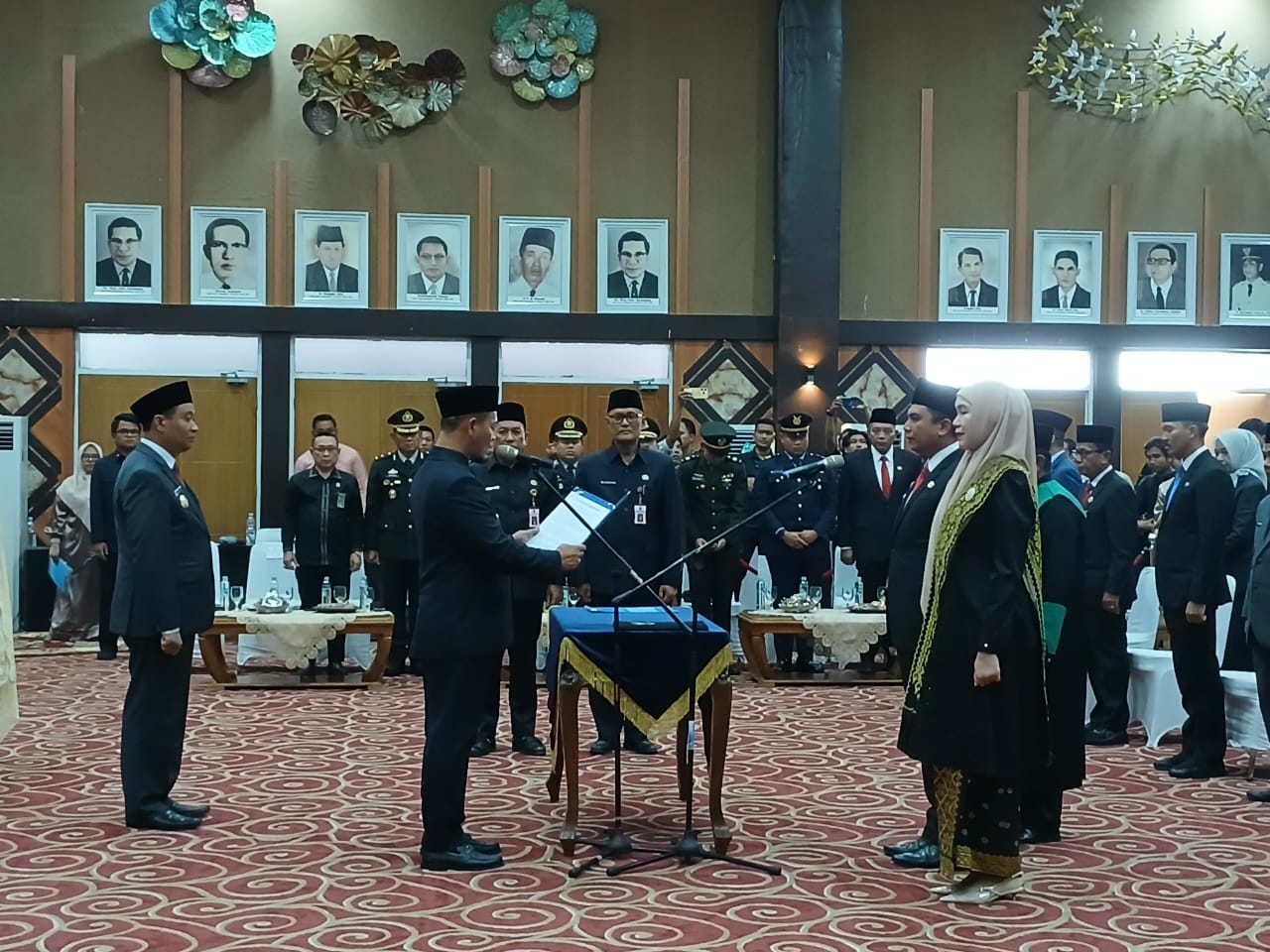 Agung memimpin langsung prosesi pengambilan sumpah jabatan Pj Sekda, dan para kepala Organisasi Perangkat Daerah (OPD) yang telah mengikuti evaluasi dan assessment tersebut. Pelantikan turut dihadiri pejabat Forkopimda