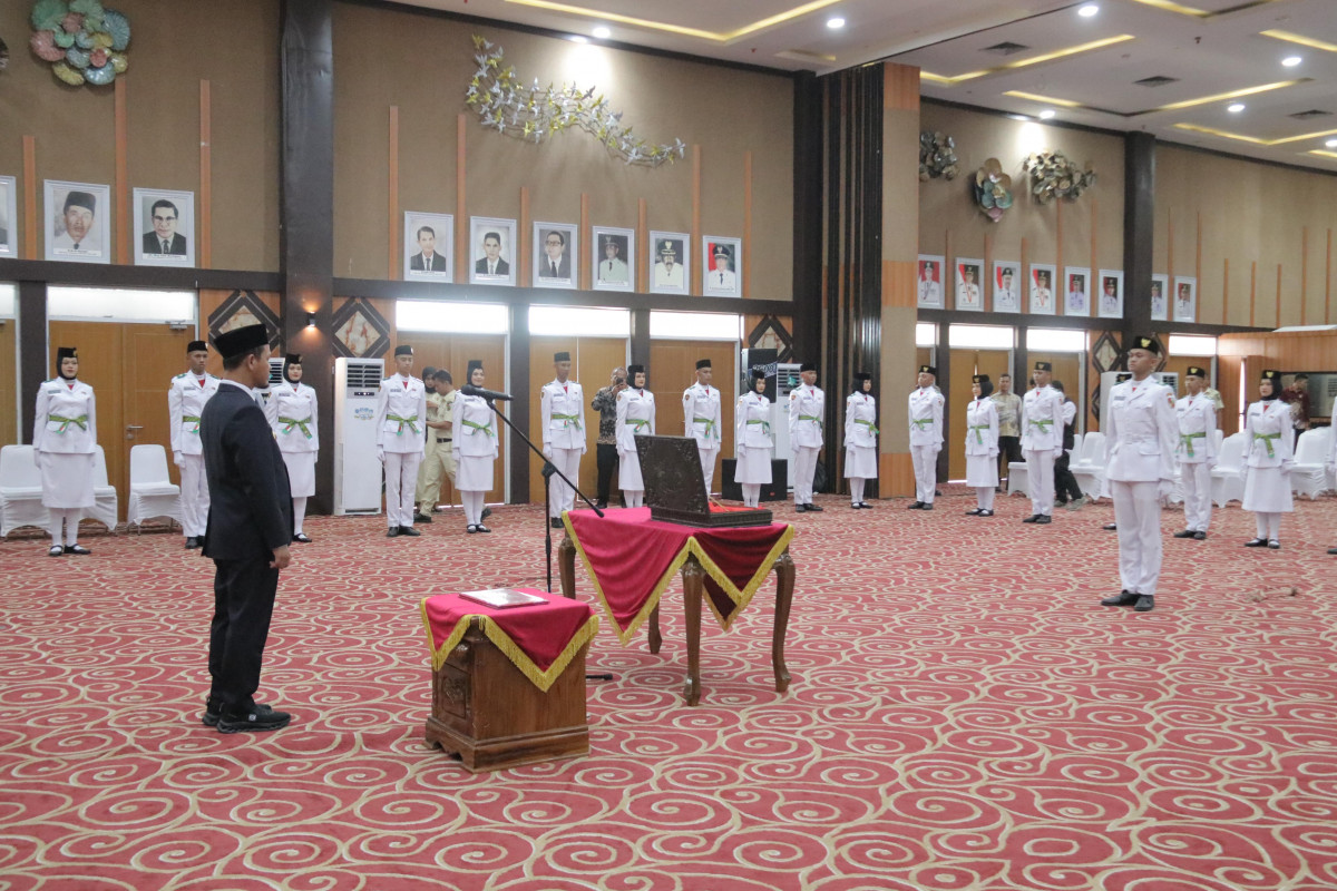 Wali Kota Pekanbaru Agung Nugroho, mengukuhkan langsung anggota Pasukan Pengibar Bendera (Paskibraka) Kota Pekanbaru, Jumat (15/8/2025). Ada 40 orang anggota Paskibraka Kota Pekanbaru yang menjalani pengukuhan.