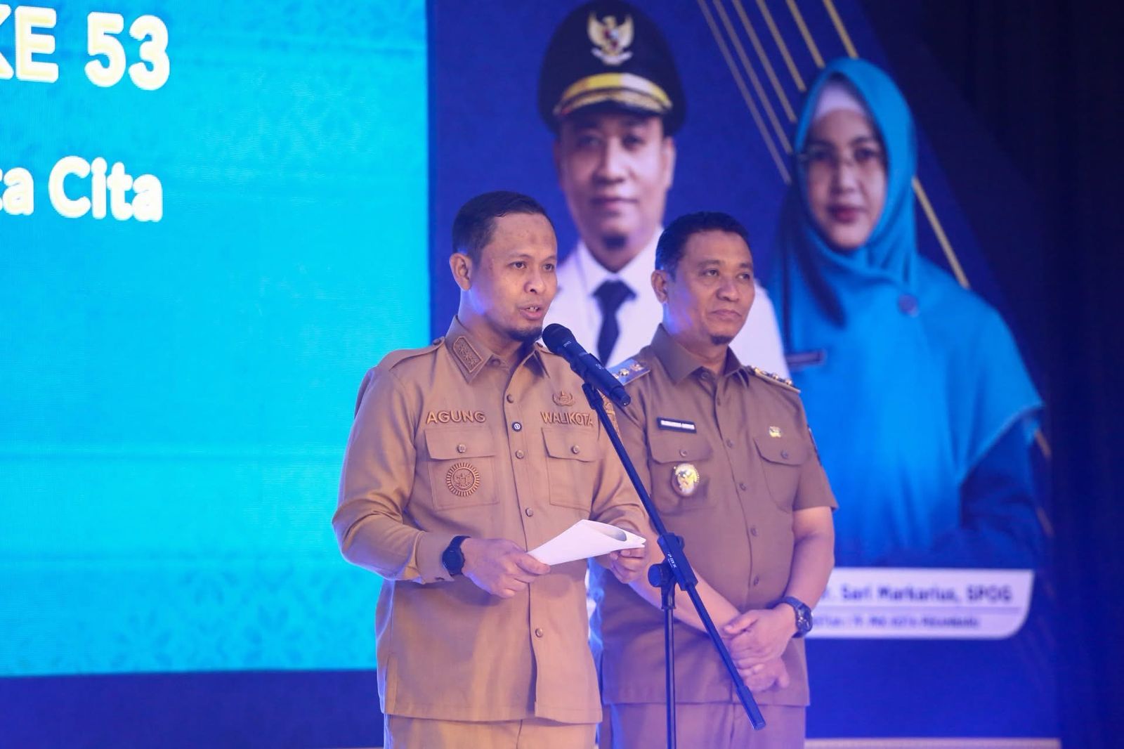 Walikota Pekanbaru Agung Nugroho dan Wakil Walikota Pekanbaru Markarius Anwar menyampaikan apresiasi kepada TP PKK Kota Pekanbaru yang telah sukses menggelar Peringatan Hari Kesatuan Gerak TP PKK Kota Pekanbaru yang ke-53 tahun.